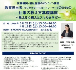 【4/18開催】教育担当者(プリセプター・OJTトレーナー)のための仕事の教え方基礎講座~教える心構えとスキルを学ぶ~