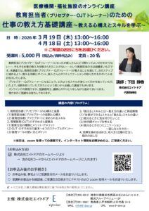【3/19オンライン開催】教育担当者(プリセプター・OJTトレーナー)のための仕事の教え方基礎講座~教える心構えとスキルを学ぶ~