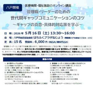 【八戸開催】世代間ギャップコミュニケーションのコツ~ギャップの真意・具体的対応策を学ぶ~(5月16日開催)